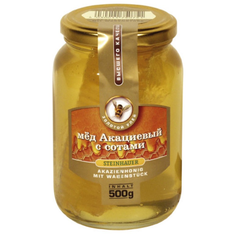 Složení: akátový med, plástev.