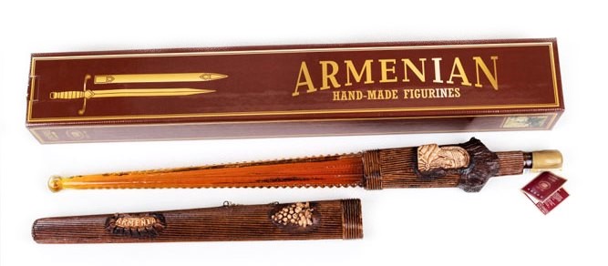 Brandy Šavle v pochvě 5 let 0,2L 40% PROSHYAN se vyrábí z hroznového vína, které pochází z údolí hory Ararat nacházející se v Arménii. Vyvážené brandy jantarové barvy má výraznou příchuť vanilky a ořechů s jemným květinovým aroma. Vyniká svou plností, jemností a dlouhotrvající chutí. Doba zrání brandy v dubových sudech je minimálně 5 let.
