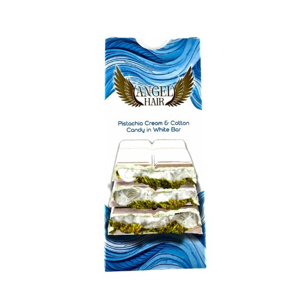Toto vybrané čokoládové potěšení kombinuje krémovou bílou čokoládu, pistáciový krém a cukrovou vatu (pişmaniye), známou jako „andělské vlasy“. Produkt je určen pro ty, kteří si chtějí vychutnat jedinečný dezert s kontrastem textur: měkký, křupavý a zároveň vzdušný.