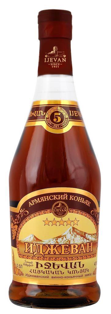 Brandy 5 let 0,5L 40% IJEVAN se vyrábí z hroznového vína pěstovaného na vinicích v Arménii. Vynikající vyvážené brandy slámové barvy má výraznou příchuť vanilky a ořechů. Vyniká svou plností, jemností a dlouhotrvající chutí. Doba zrání brandy v dubových sudech je minimálně 5 let. Doporučujeme podávat při pokojové teplotě.