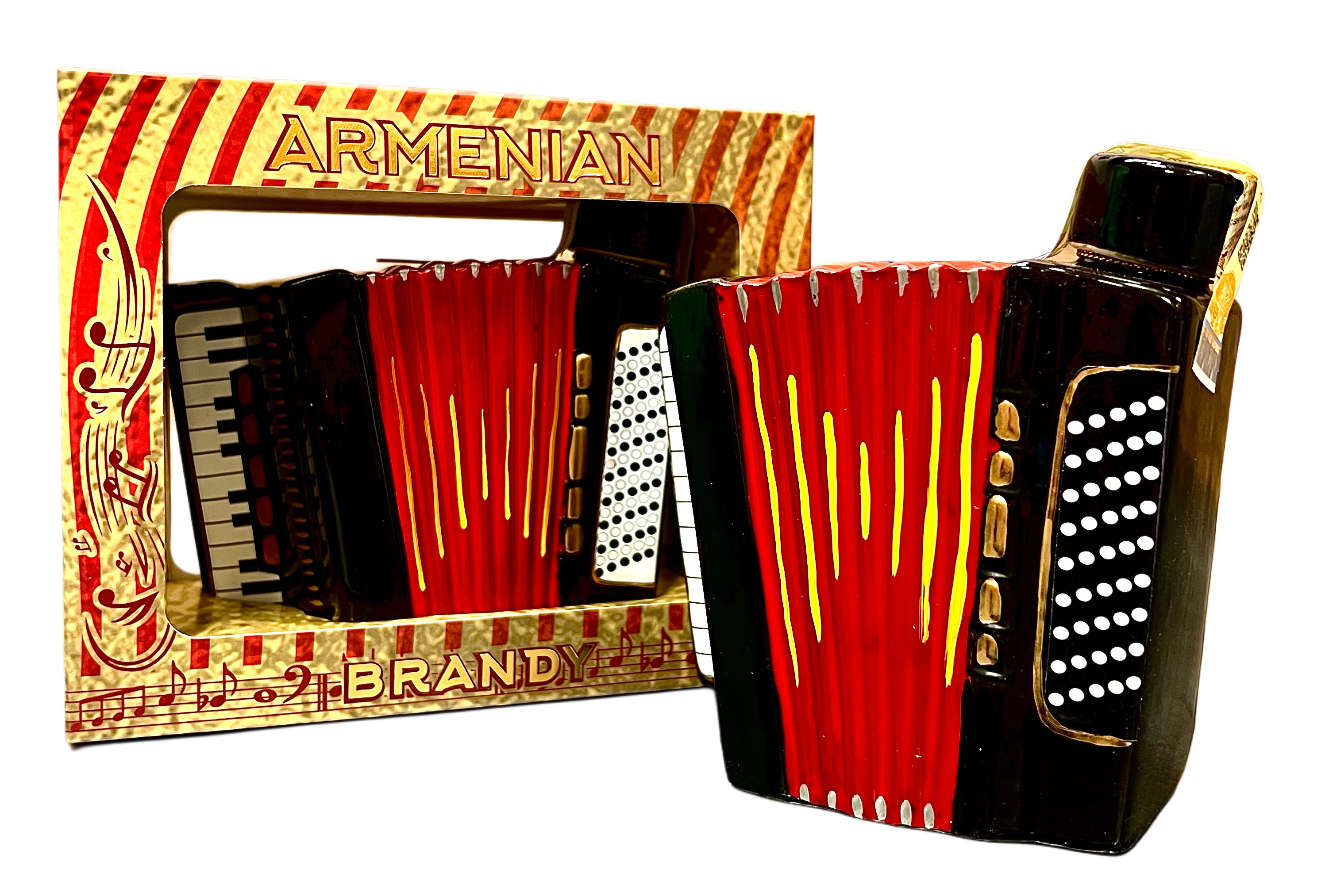 Brandy Akordeon 5letý 40% 0,5 l PROSHYAN je vyrobeno z hroznového vína odrůdy Kangun, pěstovaného na vinicích v Arménii. Tento vyvážený brandy jantarové barvy má jemnou vůni vanilky a ořechů. Vyznačuje se svou plností, jemností a dlouhým dozvukem. Doba zrání brandy v dubových sudech je minimálně 5 let.