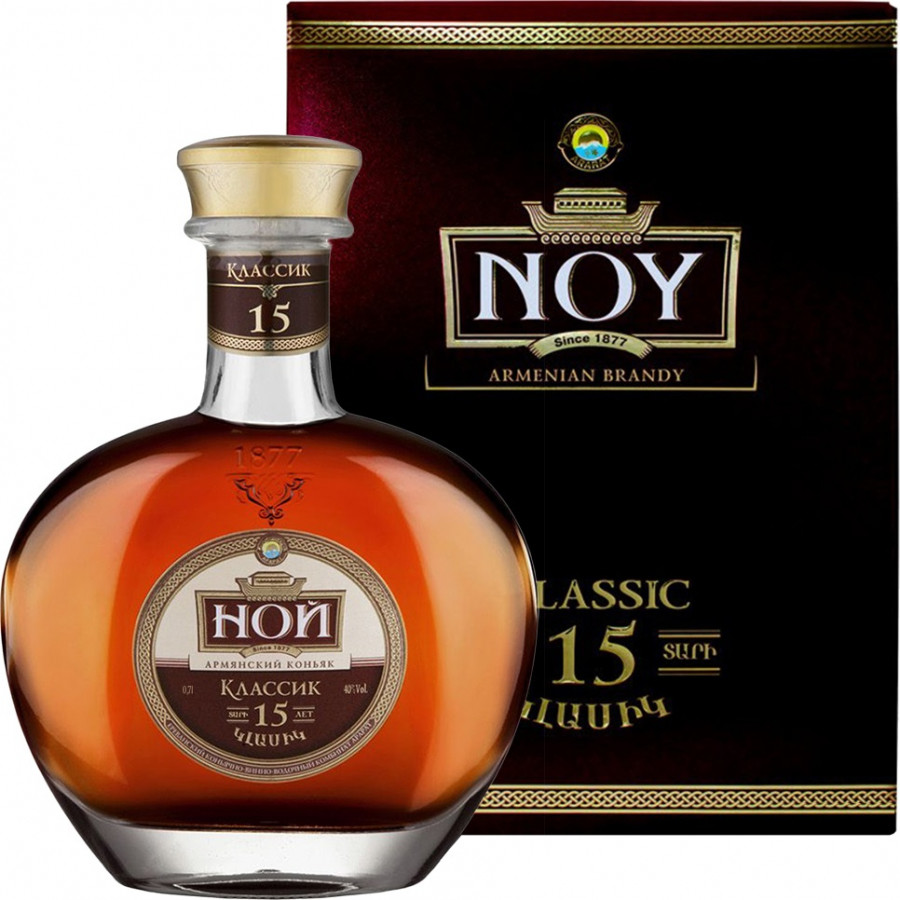 Brandy Classic 15 let 0,5L 40% NOY se vyrábí z hroznového vína, které pochází z údolí hory Ararat nacházející se v Arménii. Vyniká oranžově žlutou barvou, vůní a chutí čokoládových bonbónů, pralinek, rozinek a kandovaného ovoce. Brandy se vyznačuje měkkostí, jemností a dlouhotrvající chutí. Buket brandy obsahuje vysoké procento brandy starších 15 let. Toto brandy je jedno z nejlepších ve své kategorii. „Křišťálově čistá“ láhev přesně symbolizuje kvalitu daného brandy. Doporučuje se pít po malých doušcích, zahřáté na pokojovou teplotu. Doba zrání brandy je minimálně 15 let.