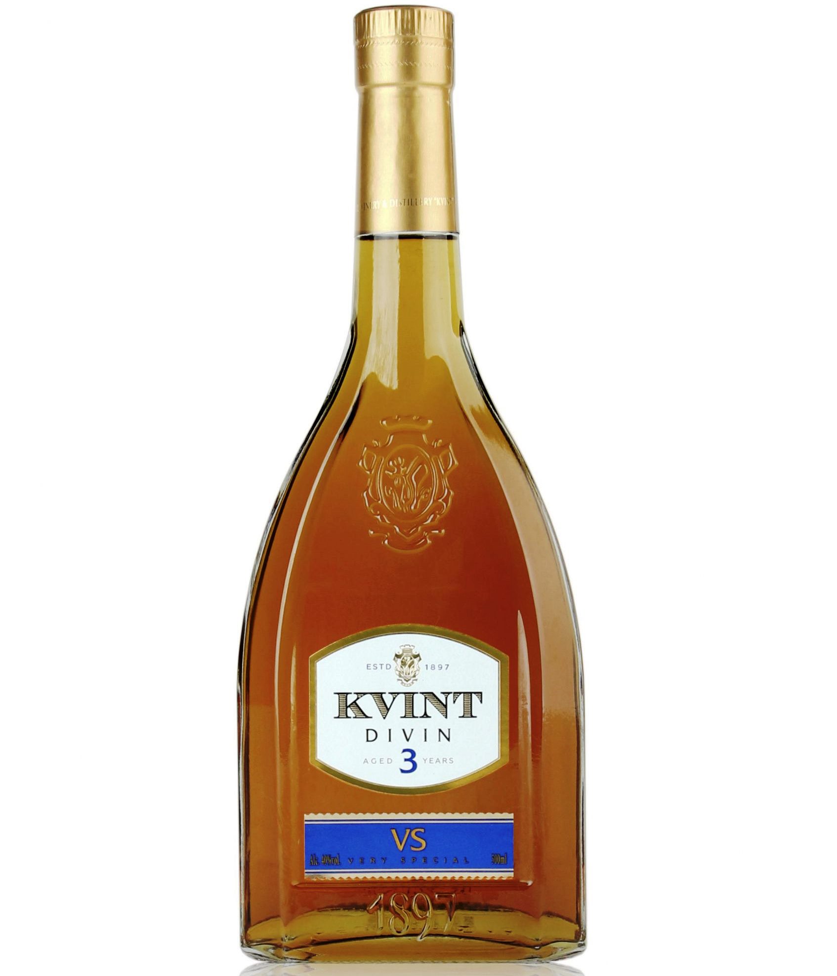 Brandy Divin 3 roky 0,5L 40% KVINT vyráběná tradičním koňakovým způsobem z vybraných hroznů evropských a místních odrůd pěstovaných ve vinicích KVINT v Moldávii, zrajících nejméně 3 roky v dubových sudech. Harmonicky vyvážená, vyznačuje se vůní božských tónů, díky čemuž je ideální pro míchání koktejlů.