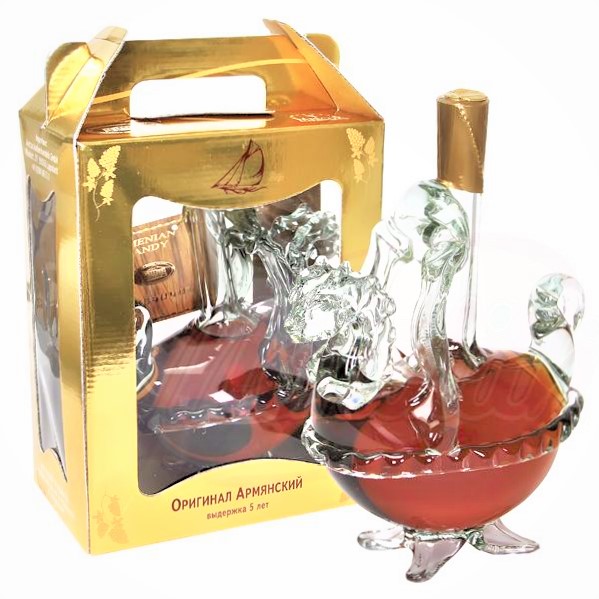 Brandy Jacht 5 let 0,5L 40% PROSHYAN se vyrábí z hroznového vína, které pochází z údolí hory Ararat nacházející se v Arménii. Vyvážené brandy jantarové barvy má výraznou příchuť vanilky a ořechů s jemným květinovým aroma. Vyniká svou plností, jemností a dlouhotrvající chutí. Doba zrání brandy v dubových sudech je minimálně 5 let.