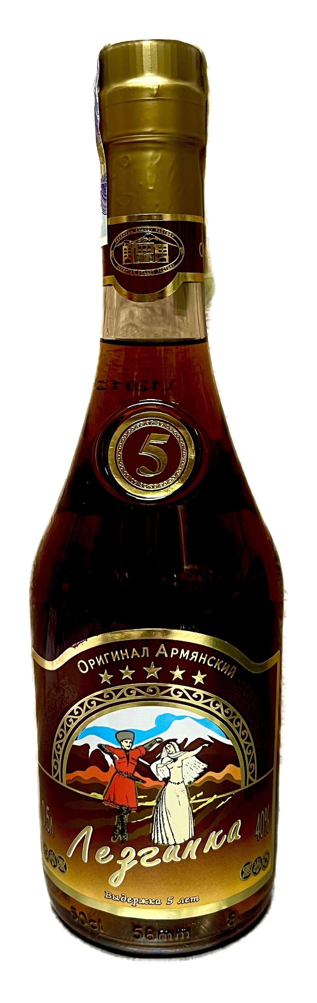 Brandy Lezginka 5 let 0,5L 40% PROSHYAN - unikátní arménský alkoholický nápoj vyrobený tradiční technologií z vysoce kvalitních lihovin, které jsou zrání po dobu 5 let. Tento skvěle vyvážený nápoj má výraznou chuť vanilky a tóny dubu. Má vynikající chuťové vlastnosti a sametový dozvuk. Skvěle se hodí jako základ pro koktejly.