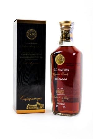 Brandy Old Armenian 10 let 0,5L 40% PROSHYAN se vyrábí z hroznového vína, které pochází z údolí hory Ararat nacházející se v Arménii. Vyniká kaštanově hnědou barvou se zlatavým nádechem, vůní ořechů, mandlí a čokoládových bonbónů. V chuti je hebké, jemné se stopami ořechů. Vyrobeno z vysoce kvalitních vinných destilátů. Doba zrání brandy je minimálně 10 let. Doporučuje se pít po malých doušcích, zahřáté na pokojovou teplotu.