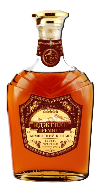Brandy Premium 5 let 0,5L 40% IJEVAN se vyrábí z hroznového vína pěstovaného na vinicích v Arménii. Vynikající vyvážené brandy slámové barvy má výraznou příchuť vanilky a ořechů. Vyniká svou plností, jemností a dlouhotrvající chutí. Doba zrání brandy v dubových sudech je minimálně 5 let. Doporučujeme podávat při pokojové teplotě.