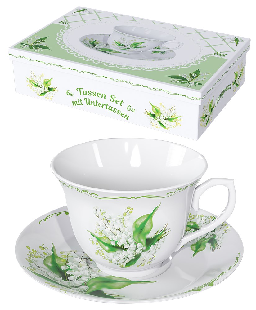 Čajový set Konvalinky 6 šálků + 6 podšálků
