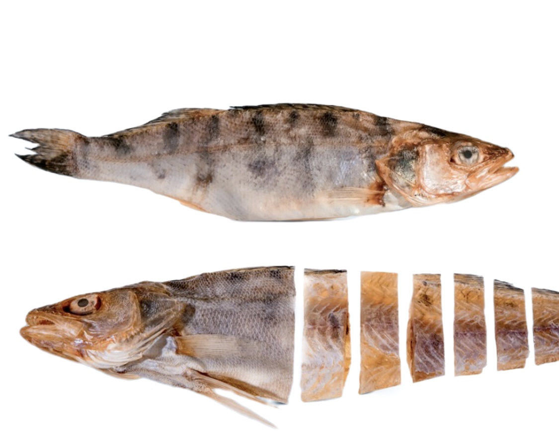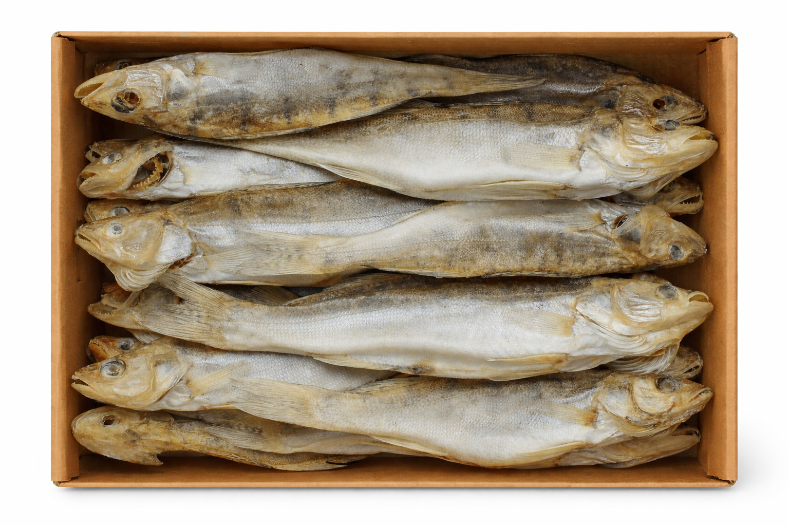 Candát (Stizostedion Volgensis), vykuchaný, sušený, a solený.