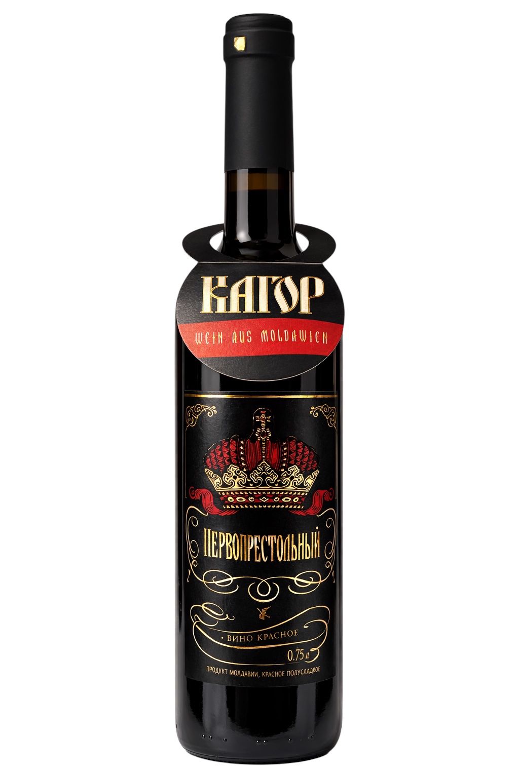 Červené polosladké víno Pervoprestolny 0,75 l — je vysoce kvalitní moldavské polosladké víno s sametovou, harmonickou chutí, plnou hloubky, a bohatým buketem vůní švestek, třešní a sušeného ovoce. Tmavě rubínová barva s tóny zrání. Víno se výborně hodí k různým druhům sýrů a lehkým dezertům.