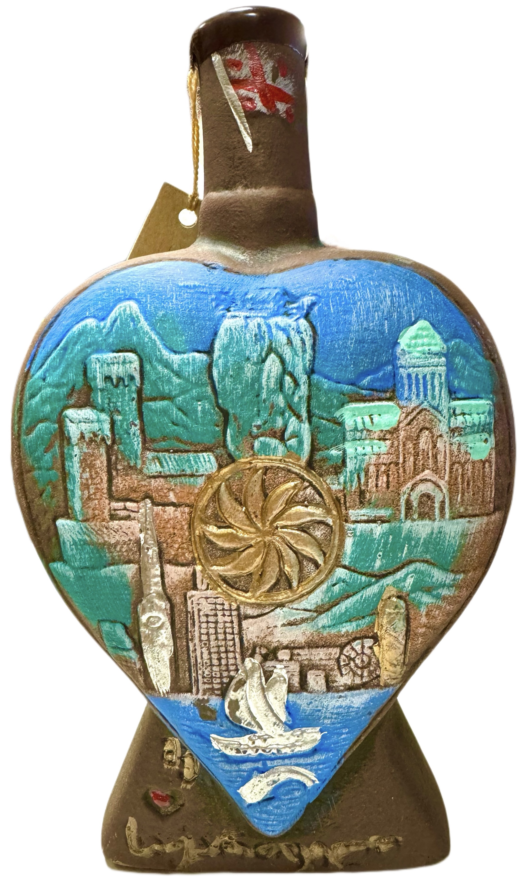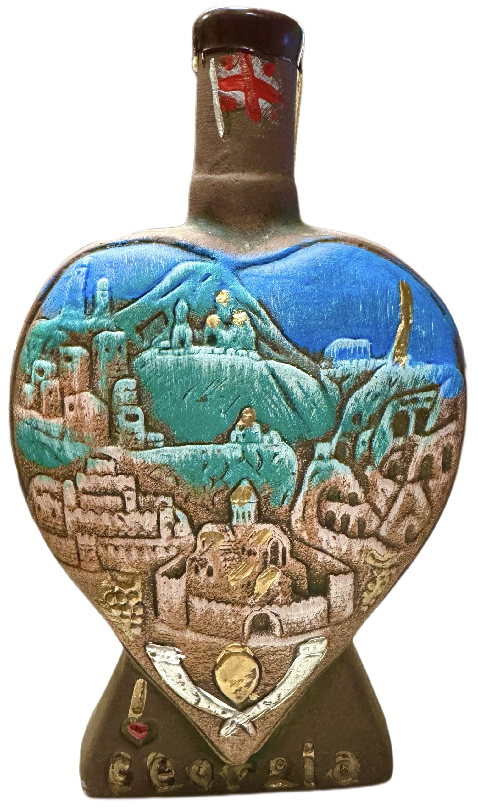 Gruzínské suché červené víno Saperavi tradiční víno vyráběné v Gruzii ze stejnojmenné odrůdy révy. Víno Saperavi obvykle má sytě červenou barvu a suchou chuť s výraznými ovocnými a bobulovými tóny, jako jsou třešně, černý rybíz a občas granátová jablka. Má charakteristický minerální dozvuk typický pro gruzínská vína a kořeněné nuance. Toto víno často doprovází gruzínská jídla, jako jsou masové pokrmy, sýry a různé druhy gruzínských polévek.
