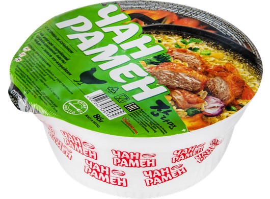 Složení: Nudle: kvalitní pšeničná mouka, rostlinný olej, sůl (extra potravinová sůl, protispékavá látka E536), lepek, stabilizátor premixu (stabilizátory E501i, E412, E452i), sójový produkt (cukr, sůl, kvasnicový extrakt, cibule smažená, sójová omáčka v prášku). Kořenící vývar: základ vývar (kuřecí vývar prášek se zeleninou, kuřecí prášek, červená paprika, česnek, černý pepř, kuřecí aroma), sůl (extra potravinová sůl, protispékavá látka E536), zvýrazňovač chuti E621, cukr. Koření na sušenou zeleninu: mrkev, sójová textura s kuřecí příchutí (sójová mouka, sójová omáčka, cukr, glukózový sirup, sůl, aroma), zelí, cibule.