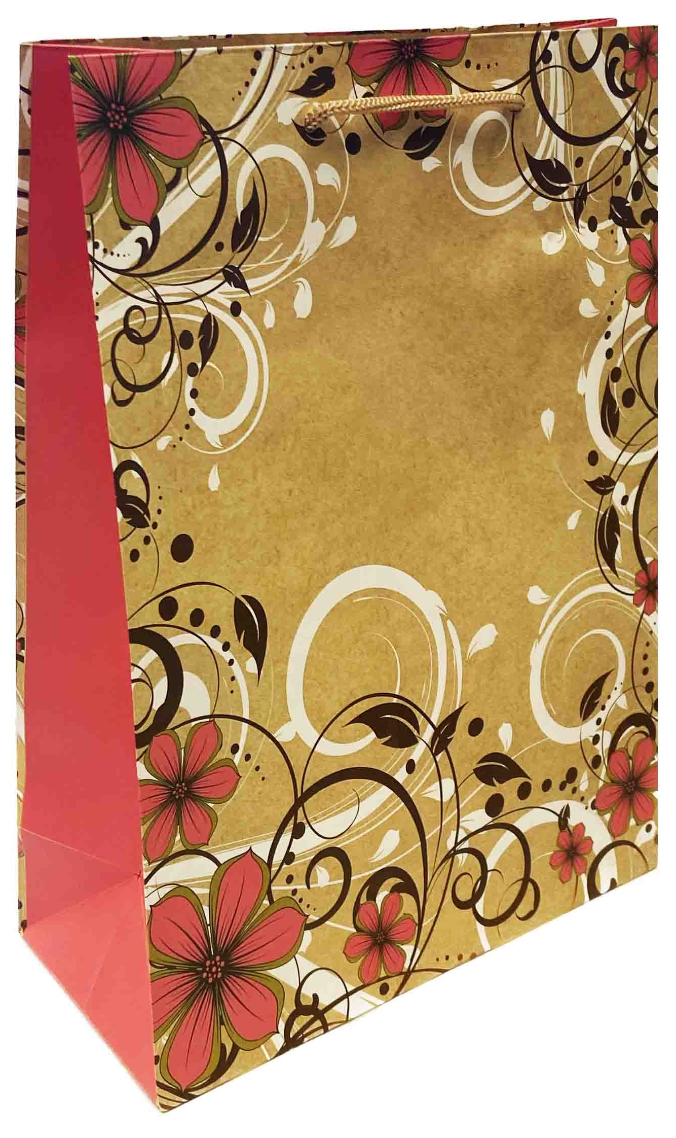 Dárková taška s červenými kvétinami 26x33cm kraftova