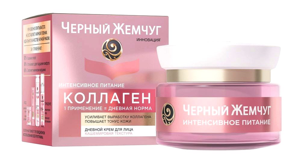 Denní pleťový krém Intenzivní výživa aktivuje tvorbu vlastního kolagenu. Doporučeno odborníky od 25 let. V každé sklenici - doporučeno odborníky na denní normu kolagenu PRO správnou výživu VÝŽIVU. Roku? Pouze krása! Nikdy není příliš brzy na to být krásná a nikdy není příliš pozdě. Černá perla ruší věkové stereotypy. Odemkněte svůj věk OPPORTUNITY. NA 1 APLIKACI: 88 % intenzivně vyživuje, 79 % vyrovnává texturu pleti, 69 % vyhlazuje mimické vrásky.