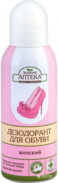 Deodorant je organickým doplňkem dámské obuvi. Výrobek účinně zabraňuje vzniku nepříjemného zápachu, intenzivně ho odstraňuje, když již vznikl a má příjemnou vůni. Výrobek zachovává příznivé mikroklima uvnitř boty, dlouhodobě blokuje výskyt bakterií. Výrobek je vhodný pro jakýkoli materiál. Může být použit na kůži, koženku, semiš a další možnosti, protože deodorant nezkazí boty.