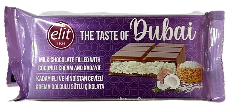 Dubajská čokoláda Elit (90 g) je prémiový produkt, který spojuje vysoce kvalitní ingredience a jedinečnou chuť. Tento produkt je ideální pro ty, kteří ocení skutečnou kvalitu a jedinečné sladkosti.