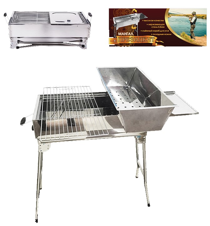 Mangal PRESIDENT je ideální kombinací vysoké kvality a pohodlného použití. Vyrobený z nerezové oceli o tloušťce 0,8 mm, tento mangal zaručuje odolnost a spolehlivost při použití jak venku v přírodě, tak doma.