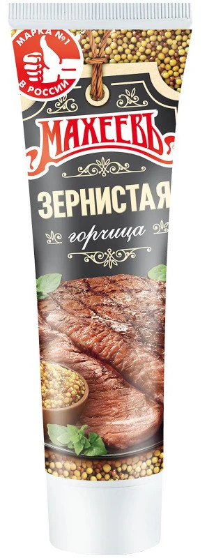 Obilná hořčice od značky Maheev je pikantní omáčka bohaté chuti, vyrobená z celých hořčičných semínek.