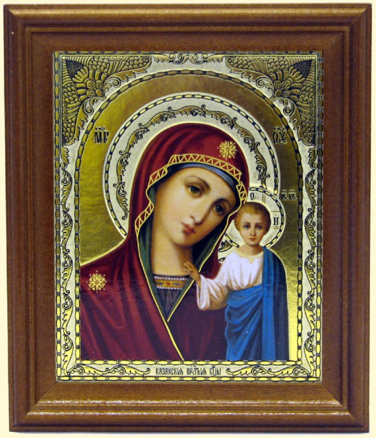 Ikona BM Kazanskaja 11x13cm dřevěná se sklem