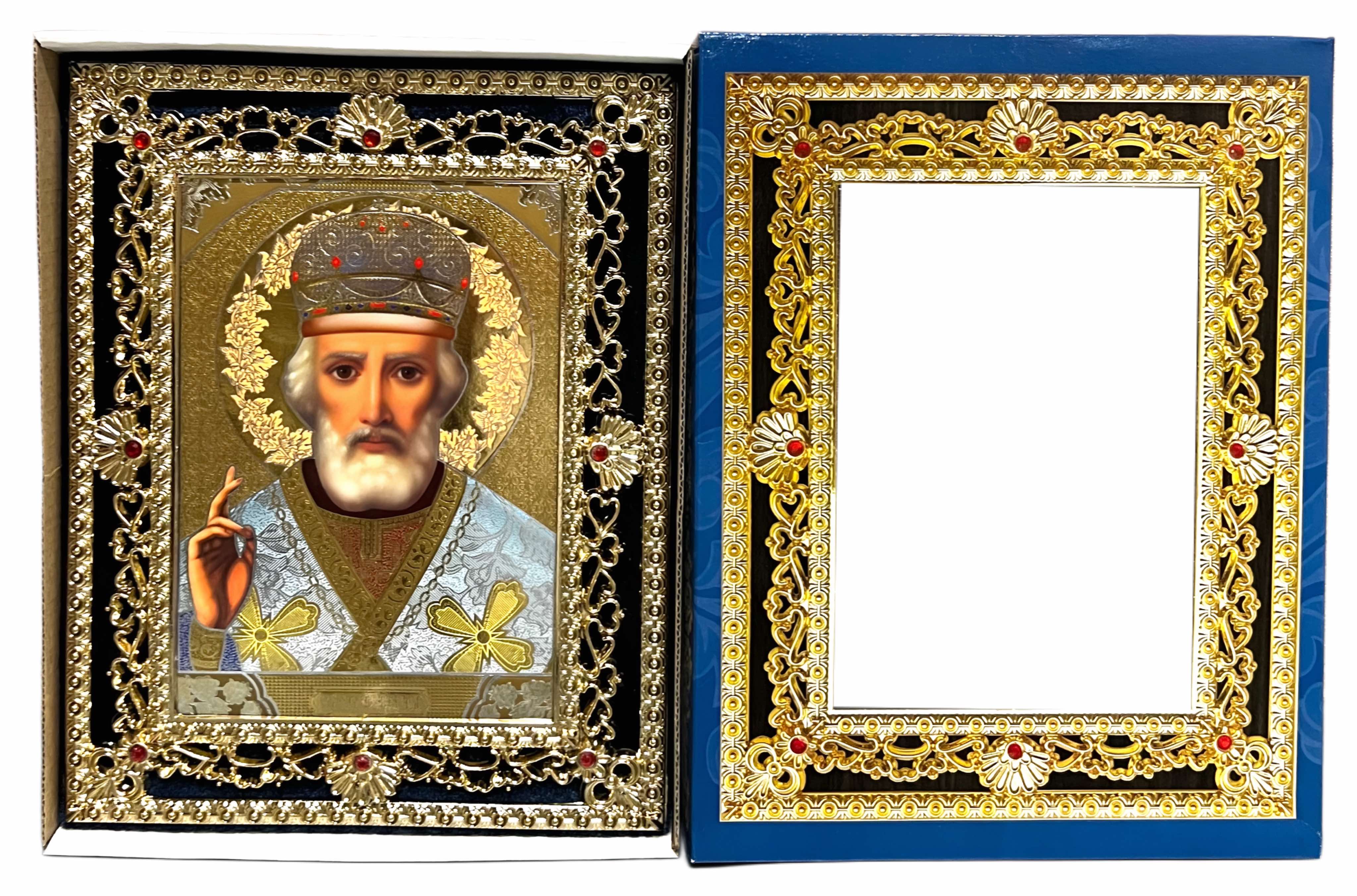 Ikona dřevěná Nikolaj 15x18cm v modrém pouzdře