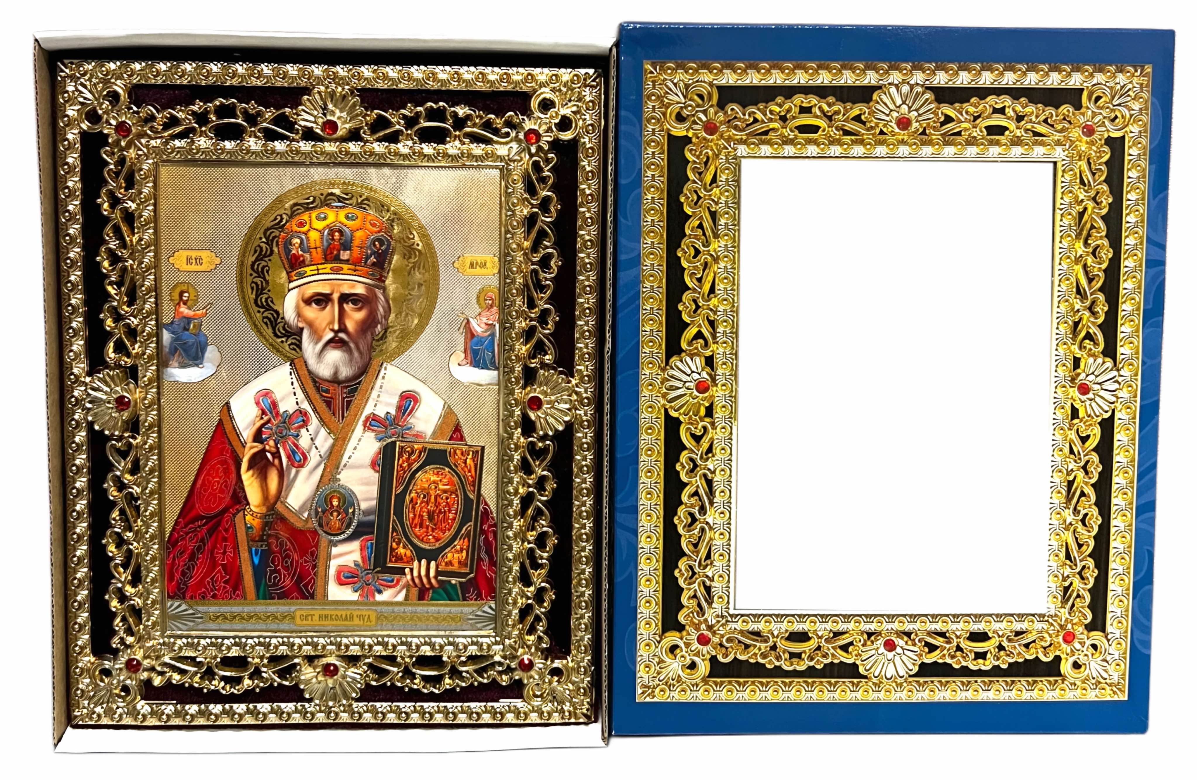 Ikona dřevěná Nikolaj 15x18cm v modrém pouzdře