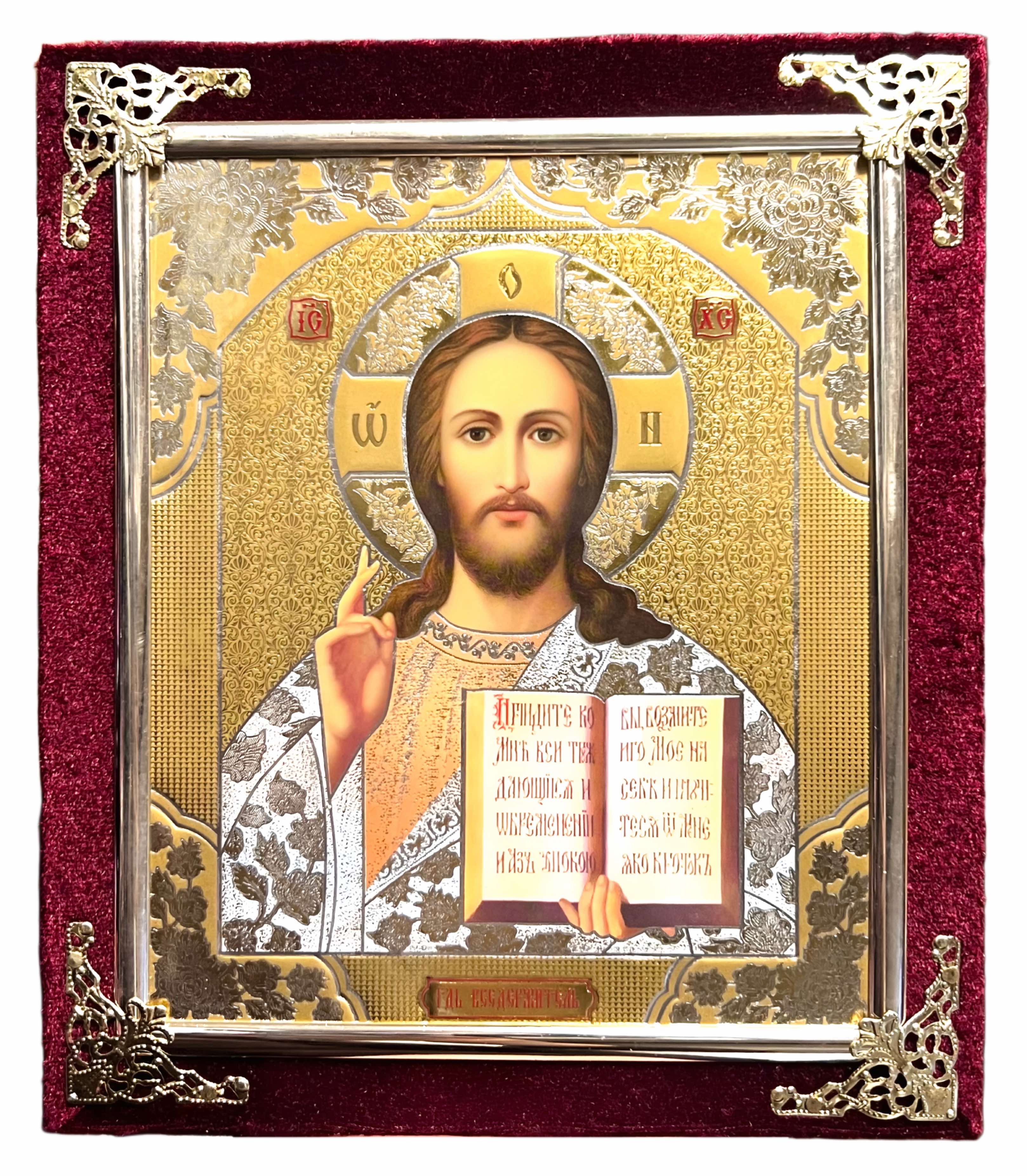 Ikona v sametu 15x18cm Spasitel (красная)