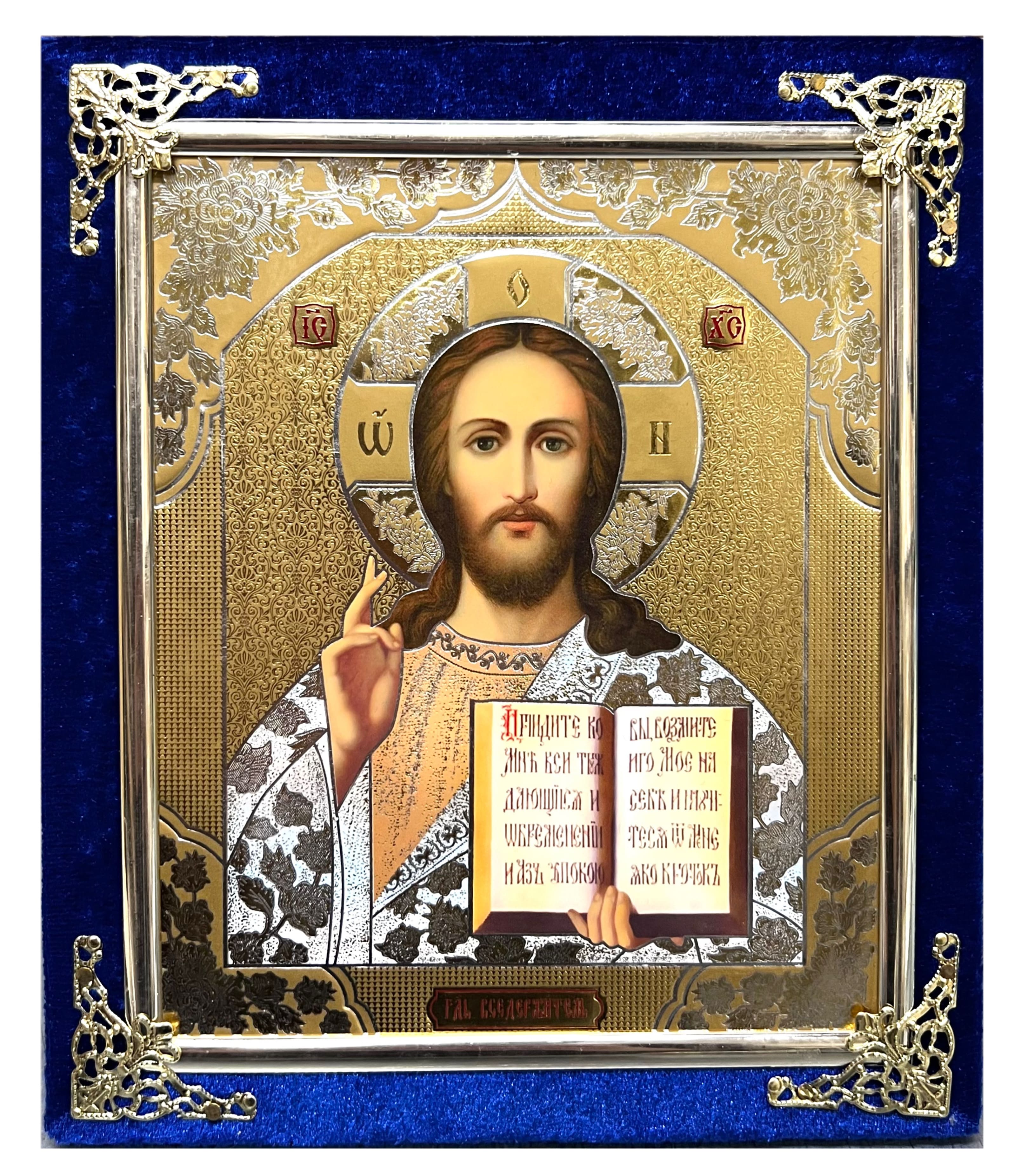 Ikona v sametu 15×18 cm Spasitel (modrá)