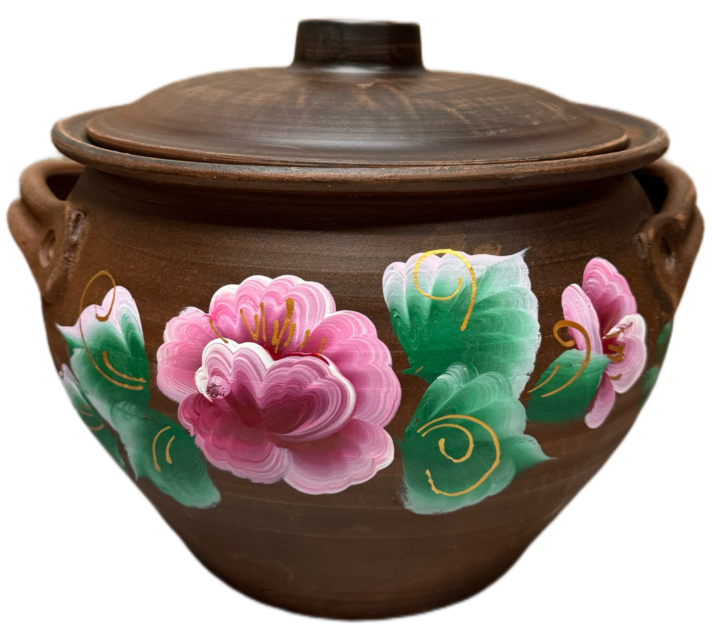 Keramický hrnec červena hlína 3,5L barevné květy kulatý