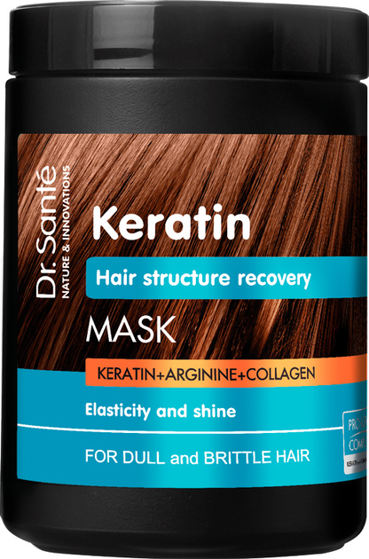 Obnovující keratinová maska Dr.Sante je intenzivní pečující prostředek určený pro poškozené, suché a lámavé vlasy. Díky obsahu keratinu, argininu a kolagenu maska hloubkově vyživuje vlasové vlákno, pomáhá obnovovat jeho strukturu, zvyšuje pevnost a pružnost vlasů a zanechává je hladké a lesklé.