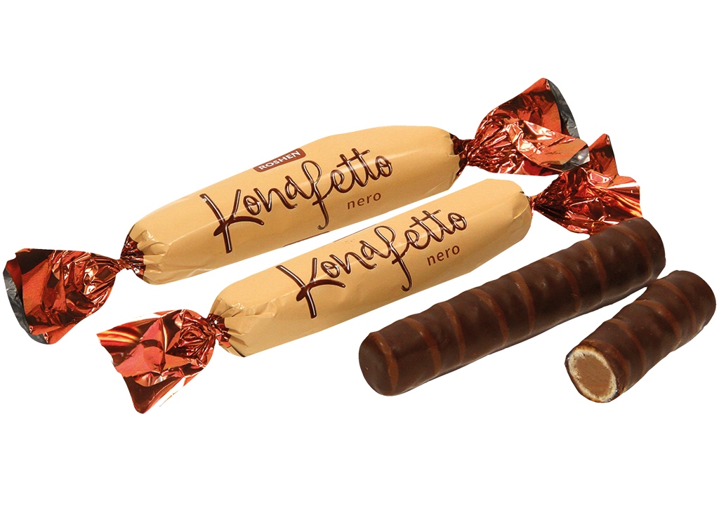 Konafetto Roshen - jemné oplatkové trubičky v čokoládové polevě s krémovou náplní z lískových oříšků. Bonbóny Konafetto Roshen si zachovaly svou legendární chuť známou z dětství. Udělejte radost sobě i svým blízkým - kupte si Konafetto Roshen domů nebo do kanceláře a dopřejte si možnost vychutnat si skvělou chuť kdykoli.