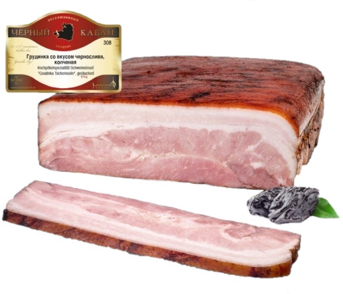 Složení: vepřový bůček, jedlá sůl, koření, dextróza, sušený glukózový sirup, bylinný extrakt, zvýrazňovač chuti: glutaman sodný, stabilizátor: trifosfát, extrakty koření, antioxidant: askorbát sodný, zrnitý bujón (kořen, řepkový olej), aromata (obsahuje švestkové aroma), konzervant: dusitan sodný, kouř.
