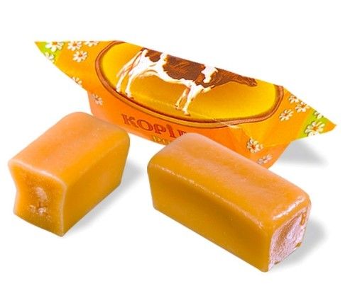Mléčné neglazurované karamely, obsahují 40% pravého mléka vlastní výroby.