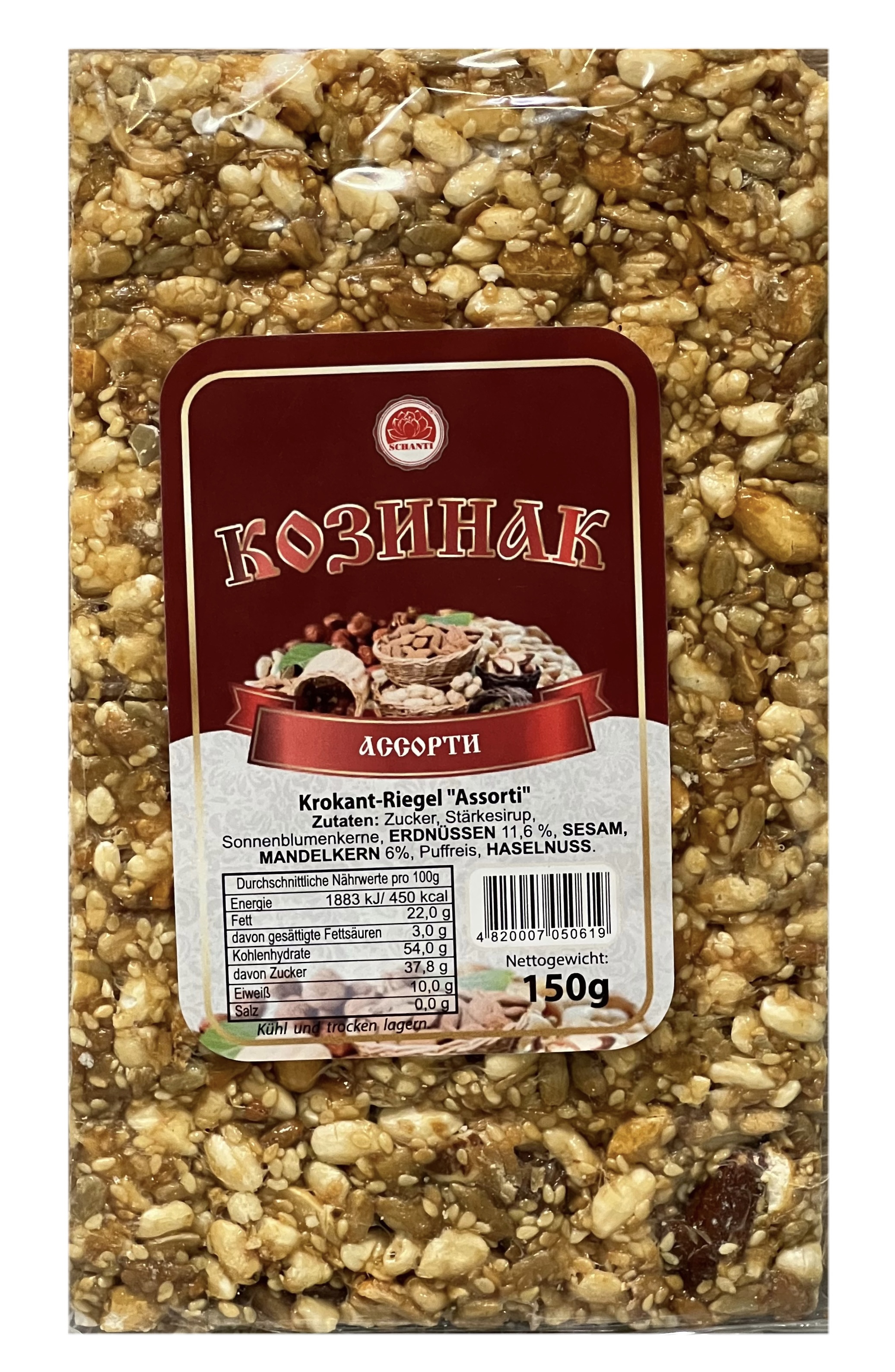 Kozínek slunečnicový 200 g Schanti je sladká pochoutka vyrobená z pražených slunečnicových semínek, které jsou slepeny cukrem a tvoří křupavou a výživnou hmotu. Tento kozínek je vynikajícím zdrojem energie díky vysokému obsahu bílkovin, vlákniny a zdravých tuků. Ideální pro rychlou svačinu nebo jako doplněk k čaji.