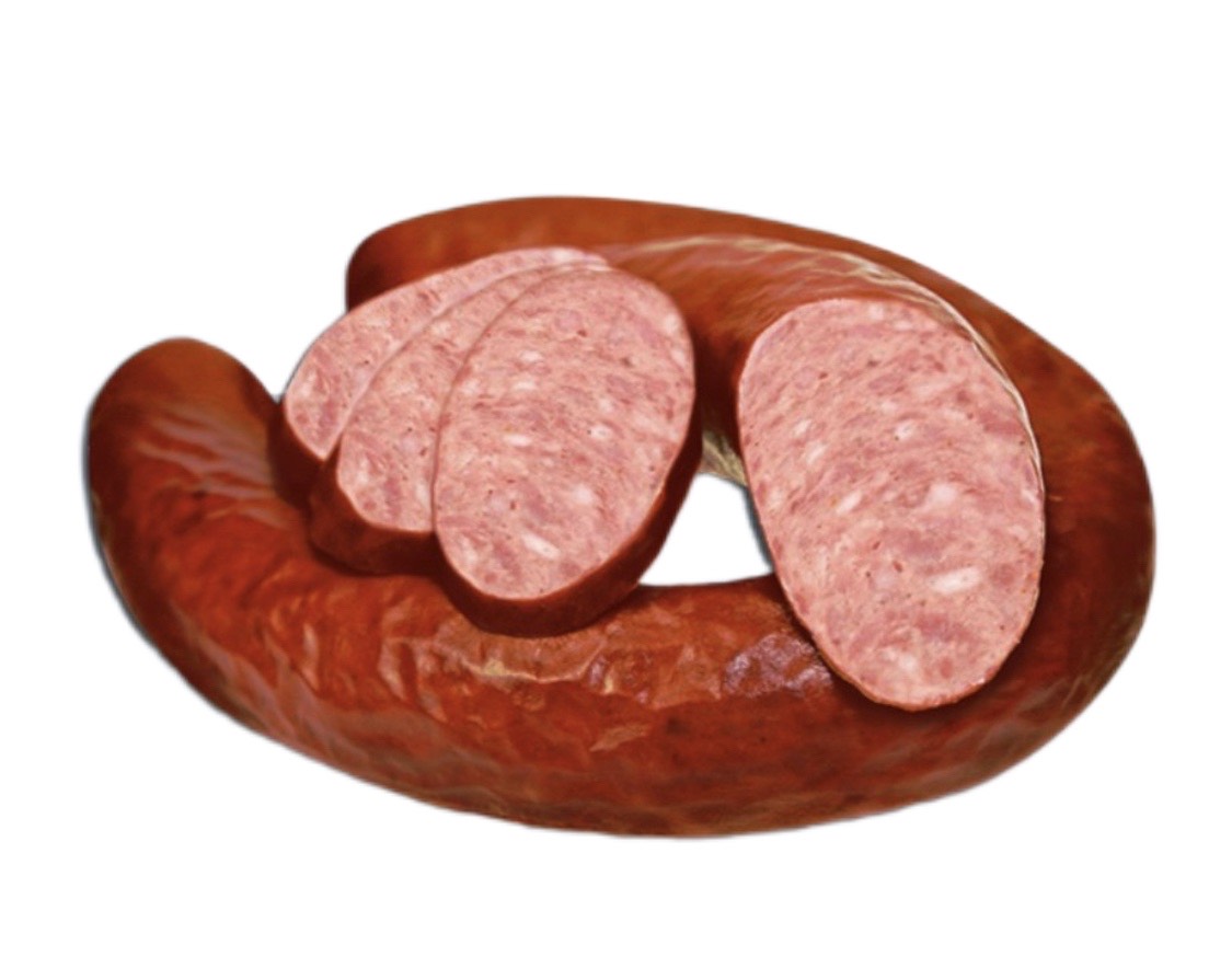Složení: vepřové a hovězí maso 85 %, slanina, pitná voda, kuchyňská sůl, koření, dextróza, látka zvýrazňující chuť a vůni: glutaman sodný, kořenicí extrakty, stabilizátor: difosfát, antioxidanty: kyselina askorbová, Kyselina: kyselina citronová, barvivo: karmíny, aromata, konzervant: dusitan sodný, kouř.