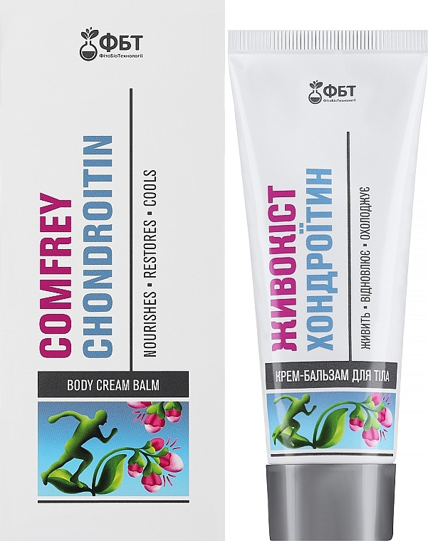 Krém-balsám pro tělo Živokost Chondroitin byl vyvinut speciálně pro boj s problémy kloubů a páteře. Základem složení přípravku je léčivá rostlina živokost, která pozitivně ovlivňuje kosti a klouby, a chondroitin sulfát. Krém-balsám stimuluje regeneraci kostních a kloubních tkání, přispívá k normalizaci obsahu a konzistence kloubní tekutiny, snižuje zánět a otoky, zlepšuje a obnovuje pohyblivost kloubů.
