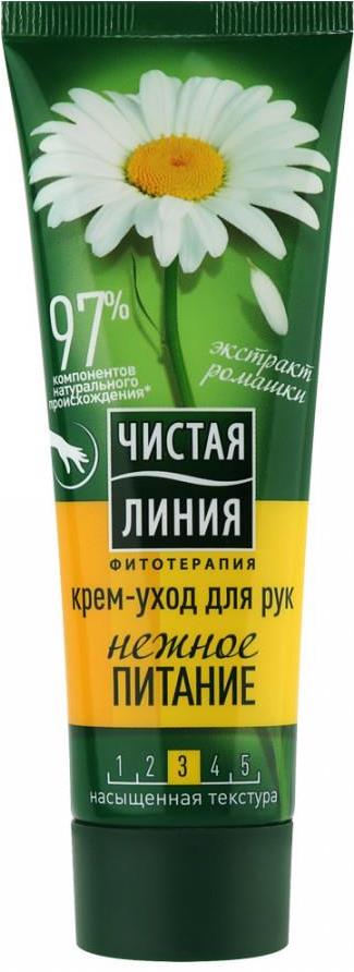Dopřejte svým rukám speciální péči krémem Čistá linie Jemný výkon. Až 97% složek přírodního původu poskytuje jemnou péči o pokožku. Heřmánkový extrakt jako součást pečujícího krému zklidňuje a zvlhčuje pokožku rukou. Komplex fytomasy hluboce vyživuje a nasycuje pokožku rukou vitamíny, takže je jemná a sametová. Bohatá textura krému se rychle vstřebává a má příjemnou vůni. Osvědčená účinnost - péče o krém účinně a trvale odstraňuje suchou pokožku a poskytuje jí výživu po dobu 24 hodin.