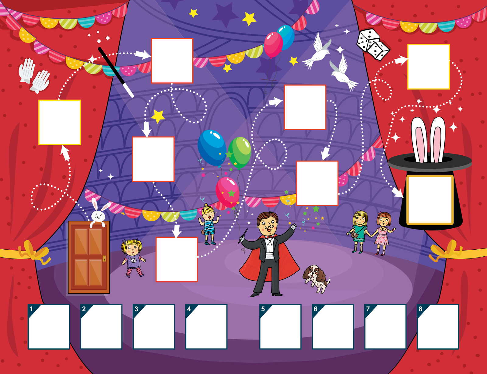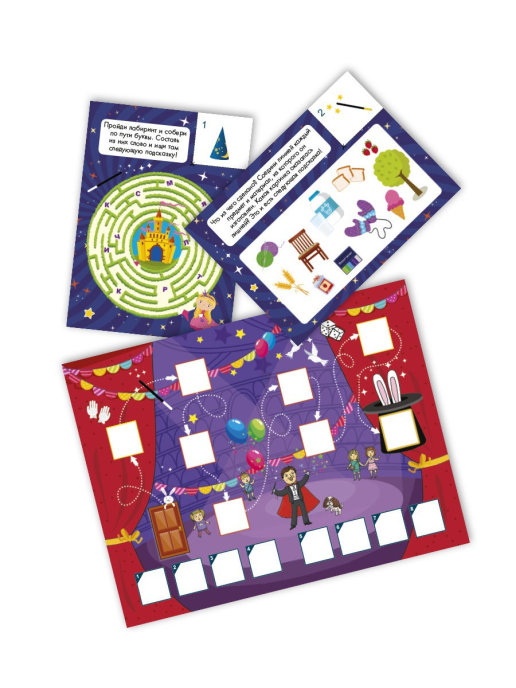 Herní set obsahuje: obálku, mapa, vložku se samolepkami, dopis od kouzelníka, návod a 8 listů s úkoly.