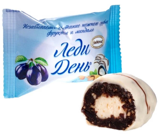 "Lady den švestka" je to ztělesnění elegance a něhy v říši bonbonů. Tyto originální bonbóny na bázi krémového suflé a ovocné hmoty z švestky jsou stvořeny pro opravdové gurmány. Jemné krémové suflé smíchané s voňavou třešňovou náplní vytvářejí dokonalou kombinaci textur a chutí. Každý bonbón je nádherně pokrytý bílou polevou, což této sofistikované pochoutce dodává kouzlo a eleganci.