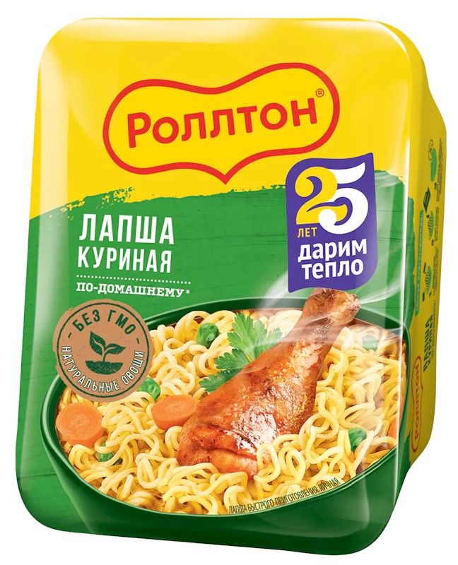 Oběd je ideální čas na dobití energie. Vše, co k tomu potřebujete, jsou Rollton nudle. Voňavé kuře, přírodní sušená zelenina a jemné vaječné nudle Rollton ve výhodném balení jsou porcí skvělé nálady, která je vždy s vámi.