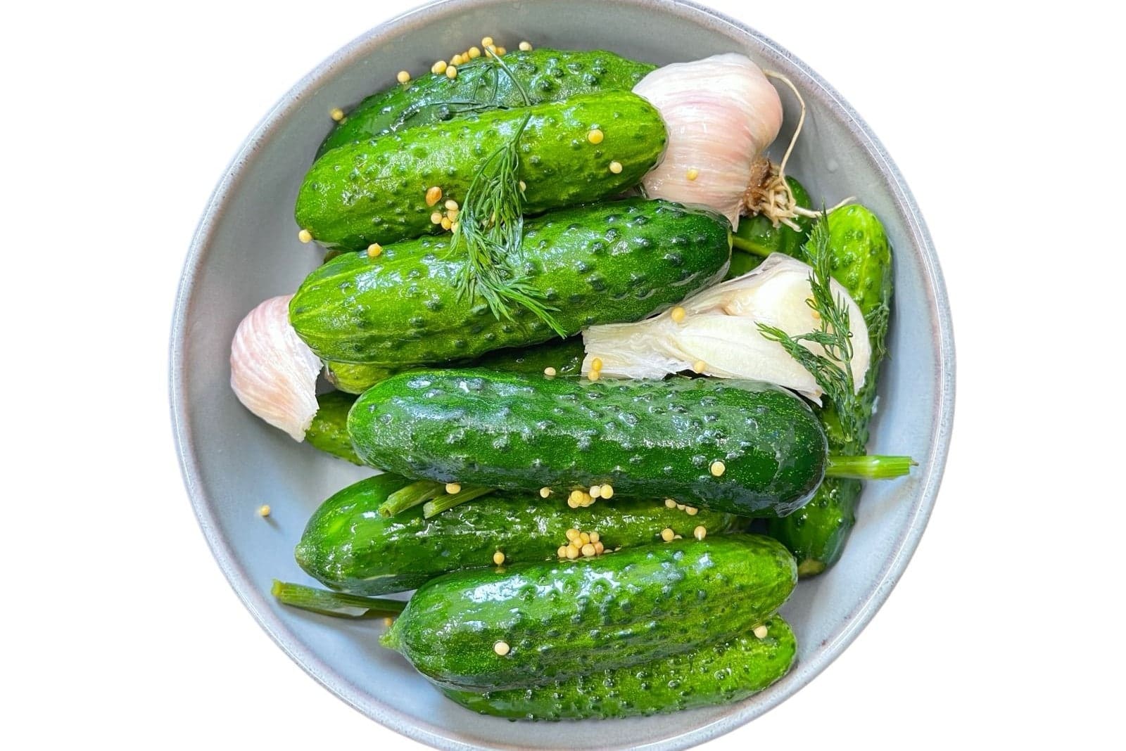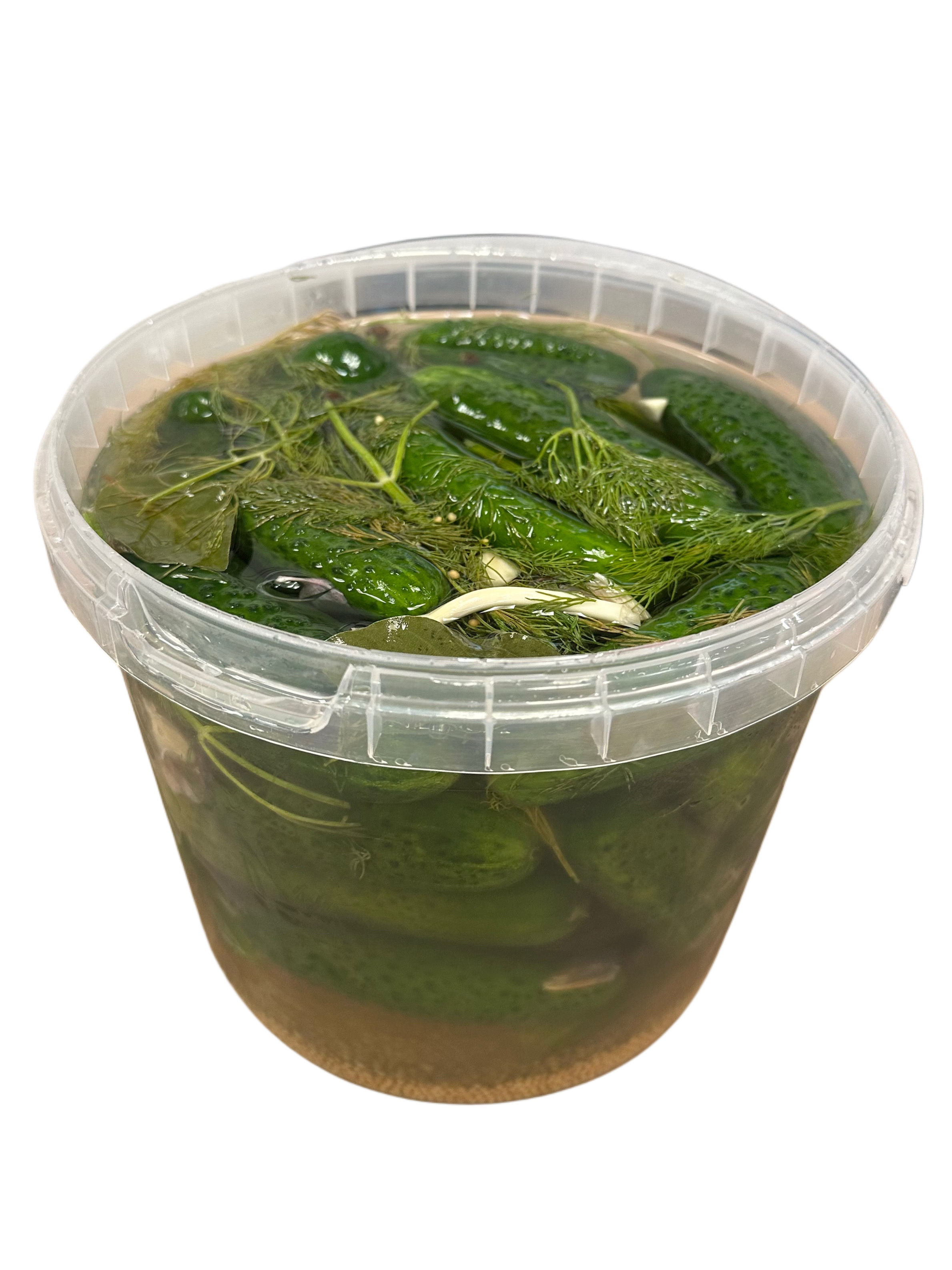 Složení: okurky, cukr, sůl, hořčice, černý pepř, kopr, česnek.