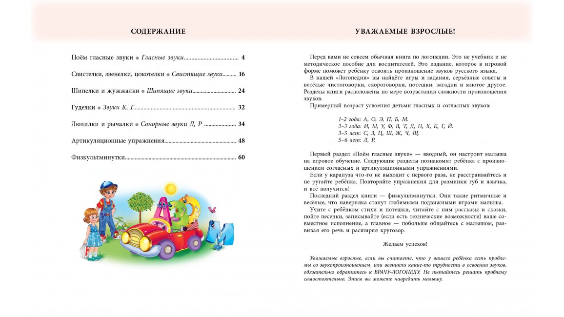 „Logoterapie“ je sestavena ve formátu zábavné a zábavné učebnice, kde jsou hodiny zábavné a ne nudné. Části knihy jsou sestaveny podle principu „od jednoduchých po složité“. Nejprve se studují zvuky ruského jazyka, které se snáze vyslovují - samohlásky a vše končí těmi nejobtížnějšími - „r“ a „l“.