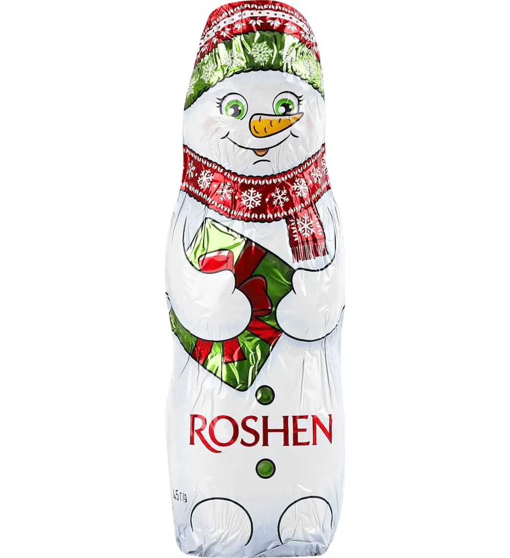 Figurka z mléčné čokolády ve tvaru sněhuláka – tradiční sváteční dárek pro děti i dospělé. Čokoláda má příjemnou smetanovou chuť a jemné kakaové aroma. Skvěle se hodí jako vánoční nebo novoroční dárek, případně jako sladká pochoutka k teplému nápoji v zimních večerech.