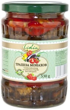 Složení: paprika 56%, lilek 30%, slunečnicový olej, kyselina octová, jedlá sůl, česnek, petržel, konzervant: sorban draselný.