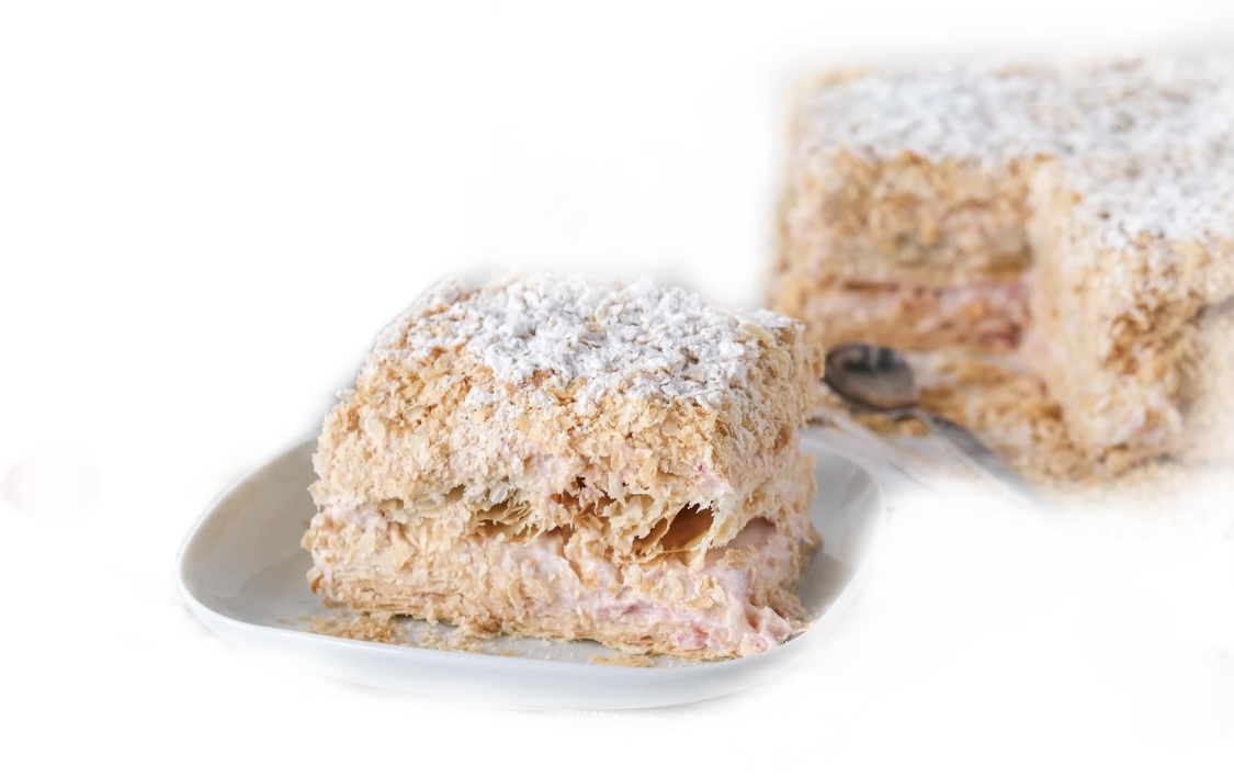 Složení: mouka, mléko, máslo, cukr, vanilin, voda, kousky malin.