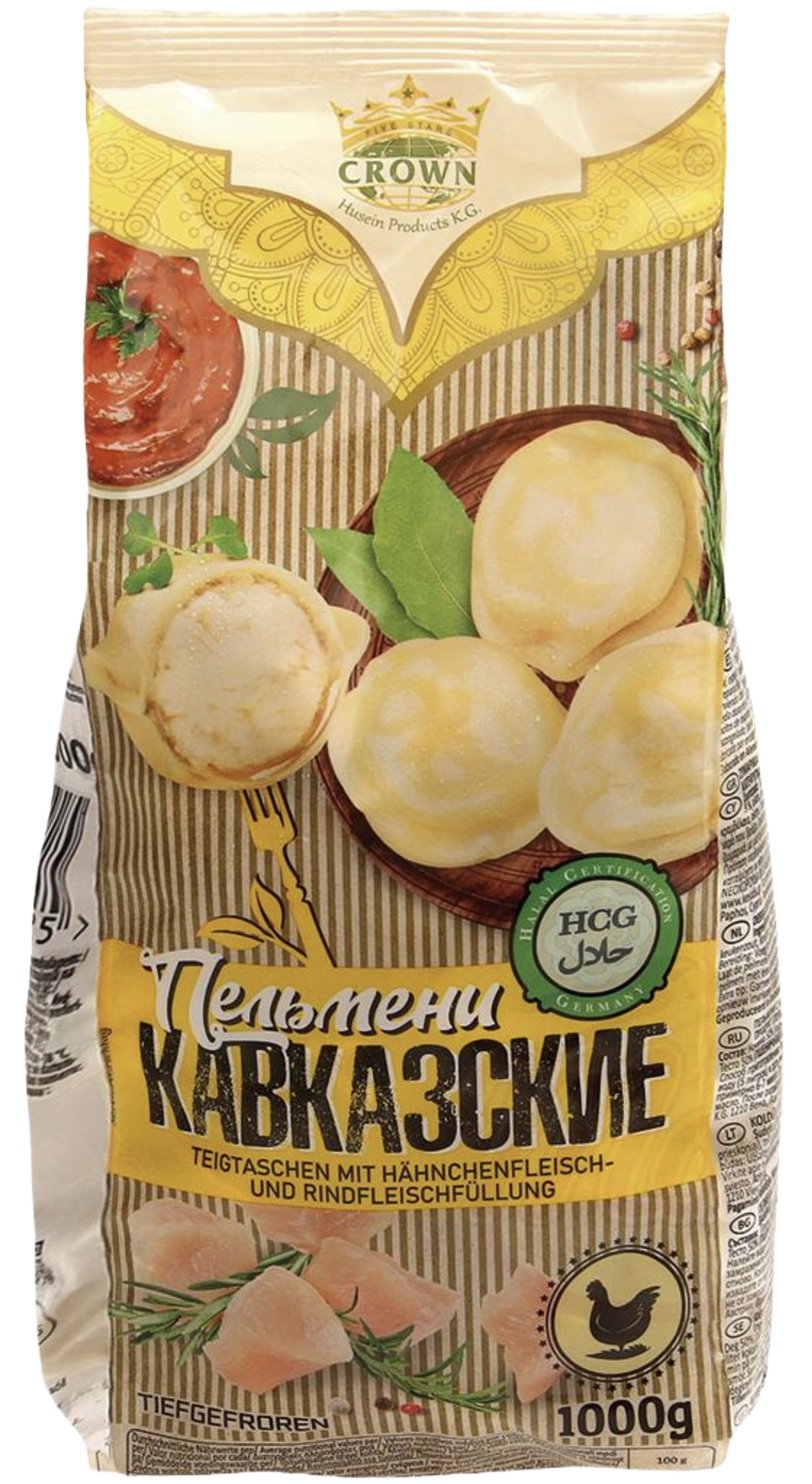 Pelmeně s kuřecím a hovězím masem 1000g Crown