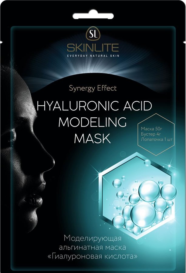 Modelující alginátová maska "Kyselina hyaluronová" je speciálně navržena pro péči o dehydratovanou, stárnoucí pleť. Maska má hydratační účinek, obnovuje vodní rovnováhu, má liftingový efekt, modeluje ovál obličeje, vyhlazuje vrásky, redukuje póry, zlepšuje tonus a elasticitu pleti. Odstraňuje stopy únavy, zlepšuje pleť, má detoxikační účinek, nasycuje pokožku mikroelementy. Aktivní látky: Alginát sodný, kyselina hyaluronová, panthenol, výtažky z aceroly, šalvěje, levandule, rozmarýnu, heřmánku, citronové trávy, růže, vilínu, extrakt z ledových hub, vitamíny A, B1, B2, B3, B5, H, B7, C ,E. Alginát sodný - výtažek z mořských řas má jedinečnou schopnost plastifikovat, vytváří co nejtěsnější přizpůsobení pleti, čímž je dosaženo efektu nejhlubšího pronikání aktivních složek masky. Algináty mají mnoho užitečných vlastností - výrazný liftingový a hydratační účinek, který je způsoben vlastnostmi kyseliny alginové.