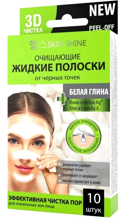 Nový unikátní přípravek pro hloubkové a jemné čištění pórů. Rychle odstraňuje černé tečky a pomáhá pečovat o pleť. Vhodné pro všechny typy pleti. Formulováno s ionty stříbra na ochranu před vlivy prostředí, podporuje rychlou obnovu poškozených oblastí, zklidňuje a hydratuje. Tekutý proužek: jedná se o originální maskovací film, který má speciální hustou gelovou texturu. Při zamrznutí na pokožce je elastický, odolný a funguje lépe než běžné čisticí proužky. Dokonale se opakuje při aplikaci tvaru nosu nebo jakékoli jiné části obličeje. Vyplňuje kontury i na těžko dostupných místech a ohybech, čímž je proces čištění černých teček maximálně efektivní. Bílý jíl absorbuje maz a nečistoty z pokožky, jemně čistí pokožku a zlepšuje její barvu. Ionty stříbra tonizují, stimulují regeneraci buněk a pomáhají chránit před agresivním působením škodlivých látek. Extrakt z aloe hydratuje, zklidňuje a činí pokožku hladkou.