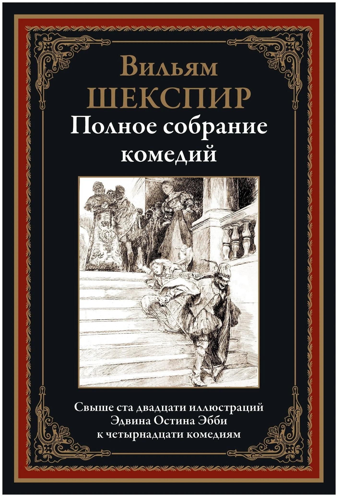 Kniha obsahuje všech čtrnáct komedií Williama Shakespeara, mezi nimiž jsou upřímně rozpustilá díla, tragikomedie a hry s velmi hořkým humorem. Takové komedie sbírky jako „Mnoho povyku pro nic“, „Dvanáctá noc“, „Zkrocení zlé ženy“ a další jsou již dlouho zařazeny do zlatého fondu světové literatury. Najdete v nich všechny odstíny humoru a komiky – od jemných a elegantních až po hranaté a fraškovité. Texty jsou zdobeny nádhernými kresbami amerického umělce 19. století. Edwina Abbey. V jeho dílech se snoubí živost designu, fantazie a poetické vnímání světa s vynikající technikou a elegantními kompozičními konstrukcemi.