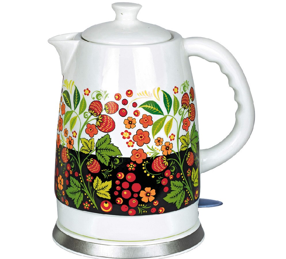 Pití čaje má v Rusku staletou tradici. Ruský čajový obřad se vyznačuje hojností čaje, pamlsků a příjemnou společností. Klasickou verzí této tradice je použití černého (cejlonského, indického a čínského) čaje s mlékem a cukrem. Pro variantu „Čaj pro dva“ a pro každodenní pití využijete zelené, ale i bylinkové a ovocné čaje v celé jejich rozmanitosti. Rychlovarná konvice "Chochloma" je vyrobena z vysoce kvalitní keramiky. Má nádherný design a stane se důležitým prvkem při pití čaje a ozdobí vaši kuchyni. Má vypínač, který během provozu svítí a automaticky se vypíná.