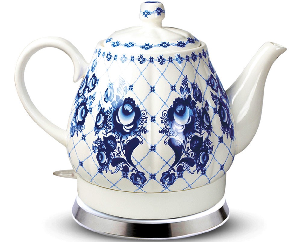 Pití čaje má v Rusku staletou tradici. Ruský čajový obřad se vyznačuje hojností čaje, pamlsků a příjemnou společností. Klasickou verzí této tradice je použití černého (cejlonského, indického a čínského) čaje s mlékem a cukrem. Pro variantu „Čaj pro dva“ a pro každodenní pití využijete zelené, ale i bylinkové a ovocné čaje v celé jejich rozmanitosti. Rychlovarná konvice "Gžel" je vyrobena z vysoce kvalitní keramiky. Má nádherný design a stane se důležitým prvkem při pití čaje a ozdobí vaši kuchyni. Má vypínač, který během provozu svítí a automaticky se vypíná.